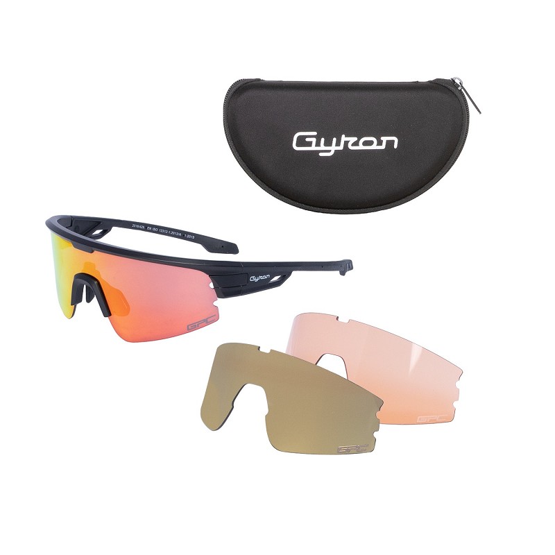 The Gyron sports glasses Typhoon comes with 3 types of lenses: polarized, gold and orange.